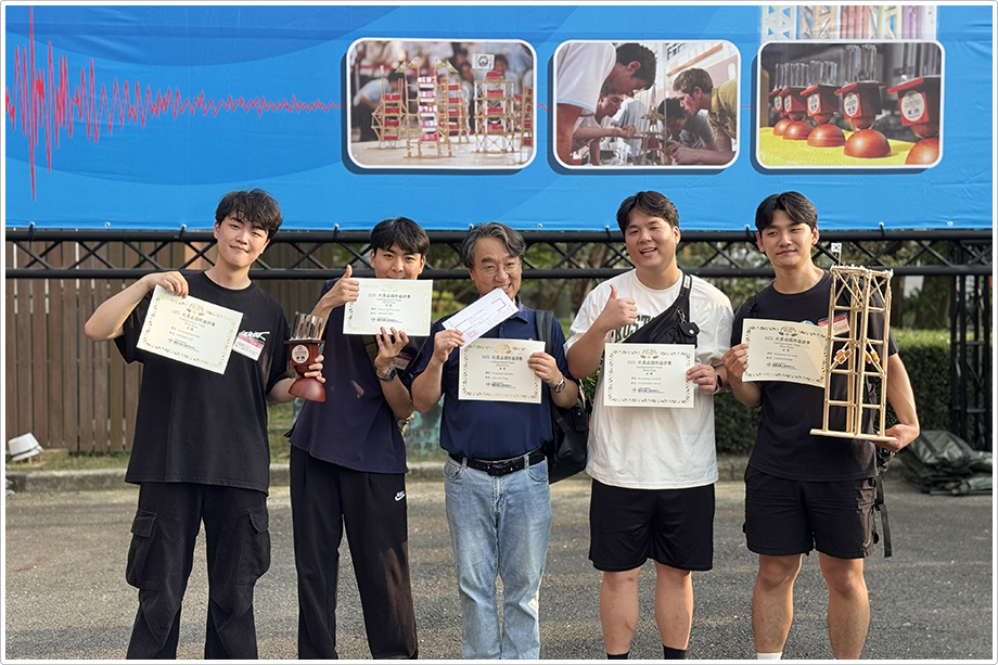 구조물 설계와 디자인을 담당한 이현호 학생은 “이번 대회를 통해 내진 설계에 대한 실제적 이해와 문제 해결 능력을 키울 수 있었고, 제한된 재료 안에서의 다양한 설계 옵션을 검증하며 공학적 사고와 창의적 설계 능력을 발전시켰다”며, “팀워크와 실험적 검증 경험을 통합한 설계 과정이 앞으로 학업과 실무 역량 강화, 대학원 연구에도 큰 밑거름이 될 것”이라고 말했다.